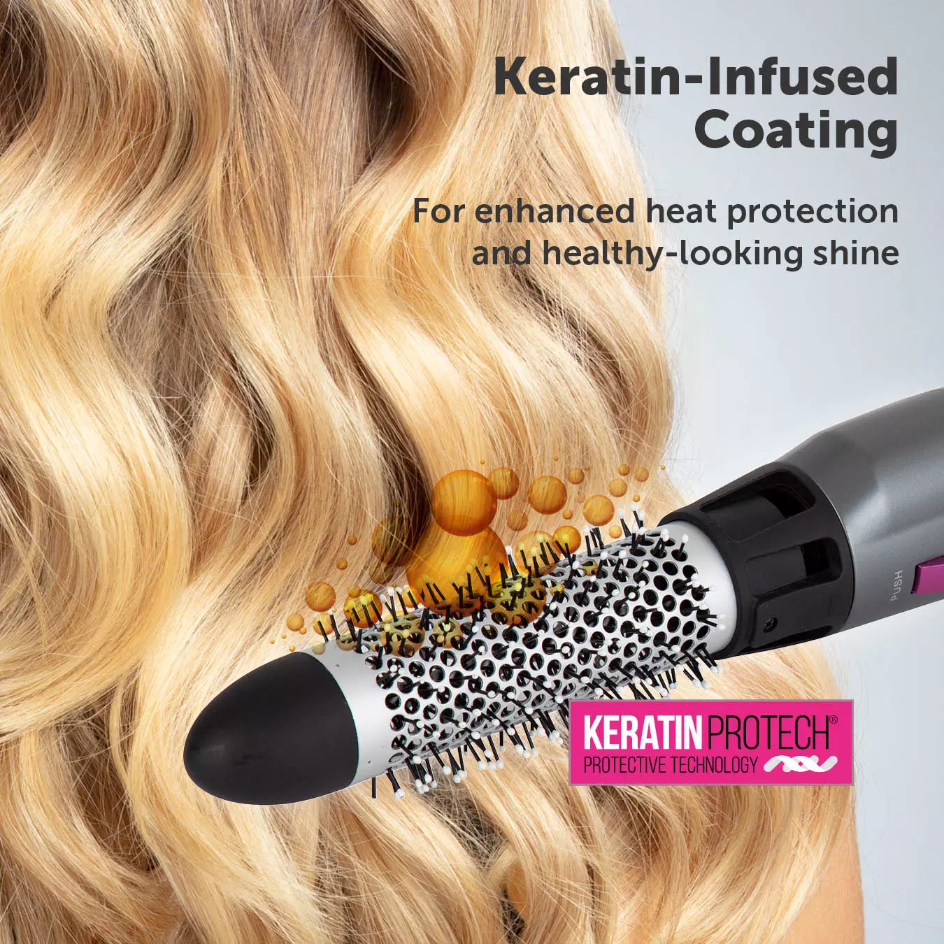 Keratin-infused barrel releases micro-conditioners into hair to protect against heat and promote healthy shine with frizz-free results