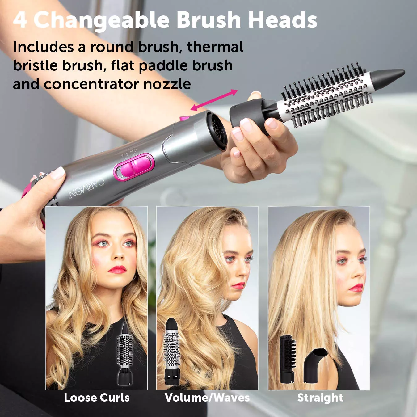 Achieve volumised styles with healthy shine using the Carmen Neon 4-in-1 hot air styler