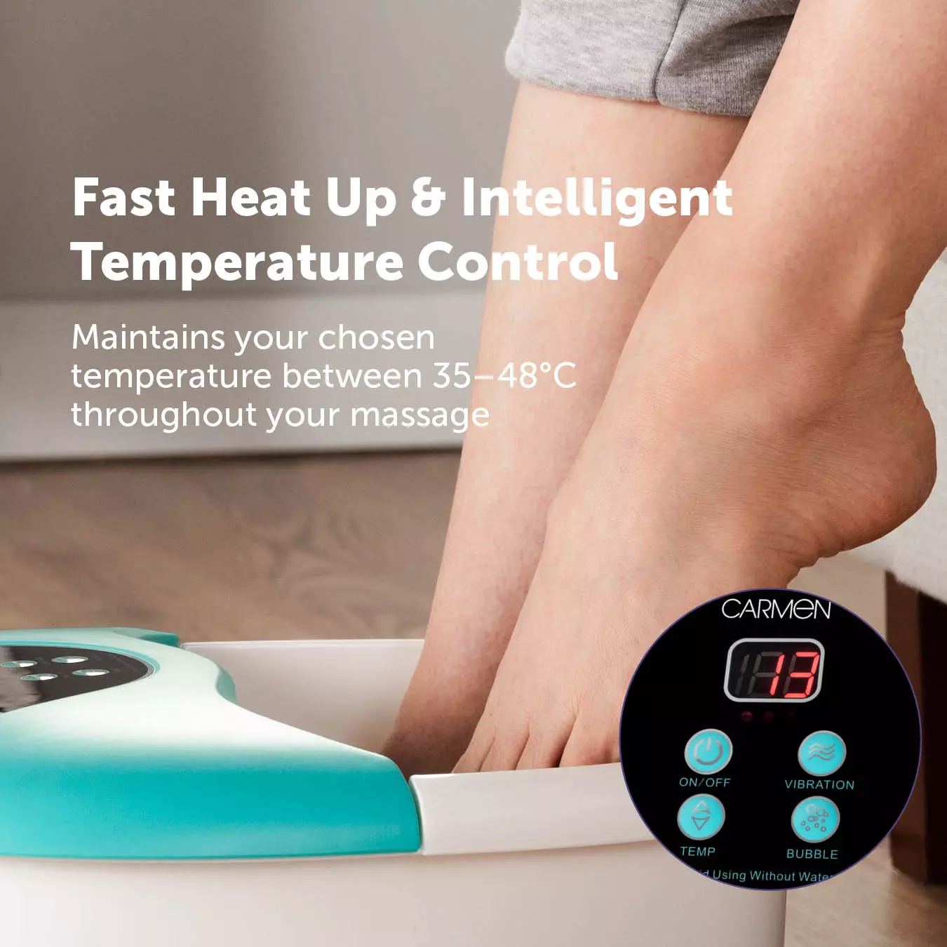 Treat your feet with this multi-functional foot spa from Carmen, with intelligent temperature control for an unlimited relaxation session. Set your desired water temperature between 35 - 48 degrees C and this will be maintained throughout your massage, no matter how long you want to relax for. This foot spa benefits from vibration, bubble and heat settings, for an all-in-one at-home spa experience.