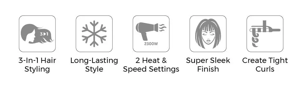 All-in-one set so you can achieve silky straight hair, tight ringlets and blow dried hair with salon-smooth results