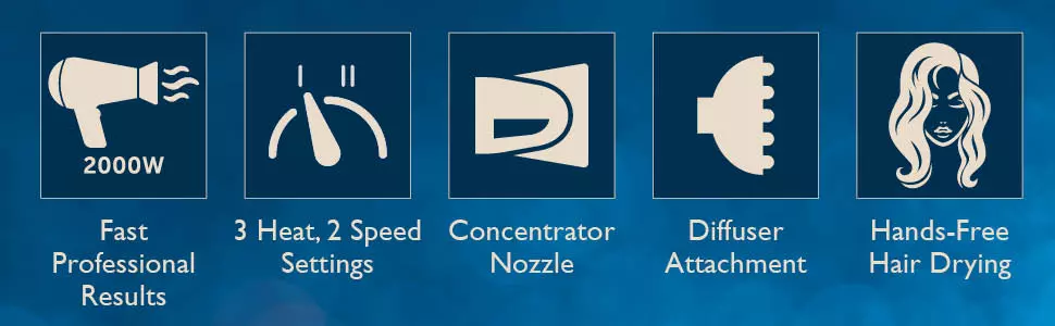 2000W dries fast with less heat to protect hair while you styleInnovative stand gives you both hands free to style your hair