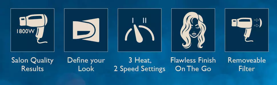 Includes a concentrator nozzle for precise stylingRemovable filter for easy cleaning and maintenance