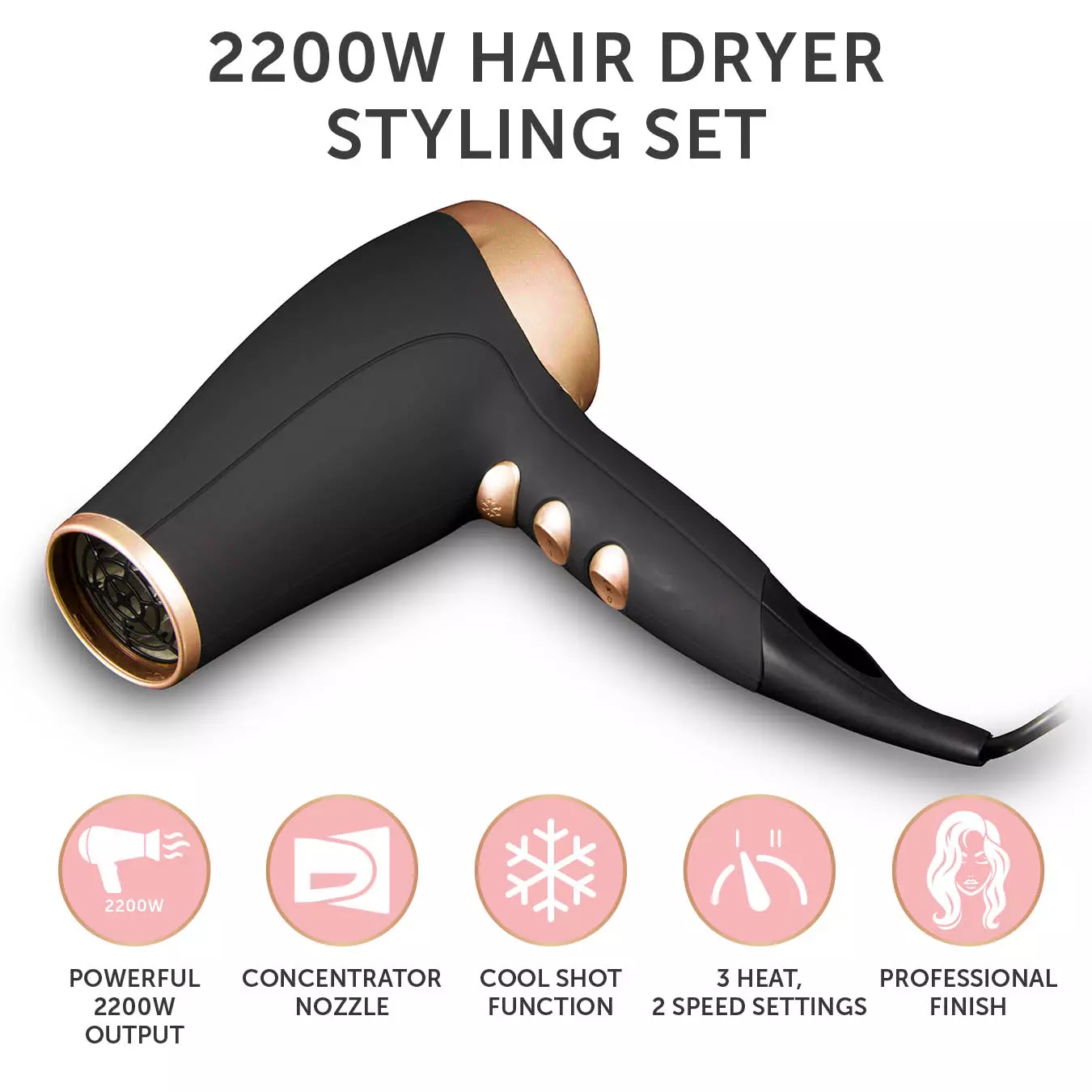 Noir Hair Dryer with Concentrator Nozzle, 2200W