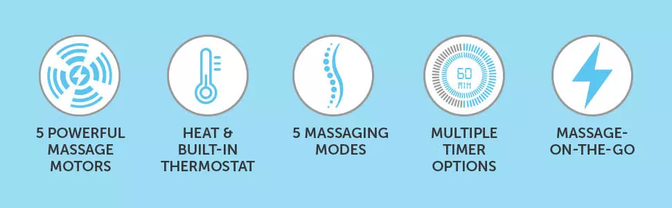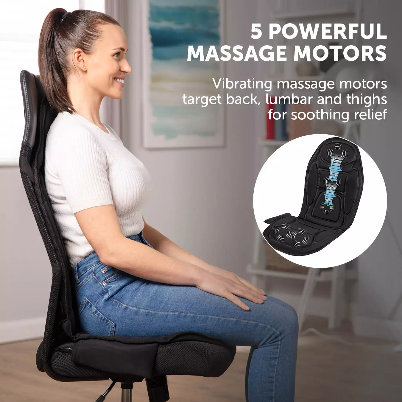 5 powerful massage motors give soothing relief to back/lumbar/thighsHeat to ease muscle tension/stress and promote circulation