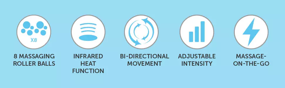 Infrared heat to ease muscle tension/stress and promote circulationBi-directional movement with forward and reverse kneading