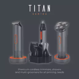 Maintain beards, stubble and body hair with the Titan series premium cordless trimmers, shavers and multi-groomers for all priming needs